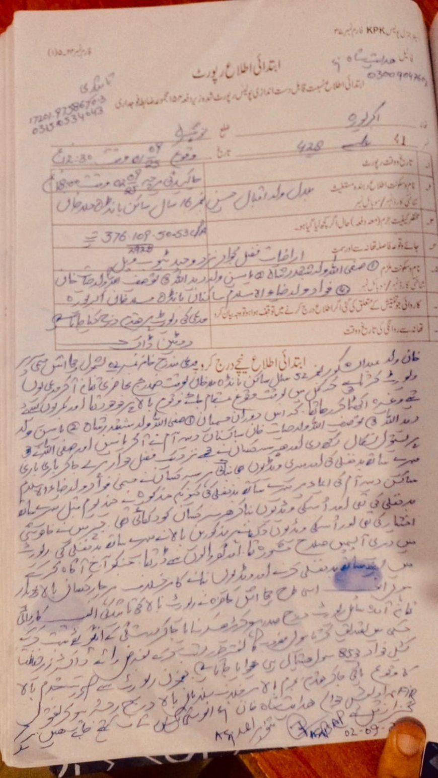 پوليسو وئيلي دي چې په ميډيکل رپورټ کښې دجنسي زياتي دتصديق نه پس مقدمه درج کړے شوې ده.