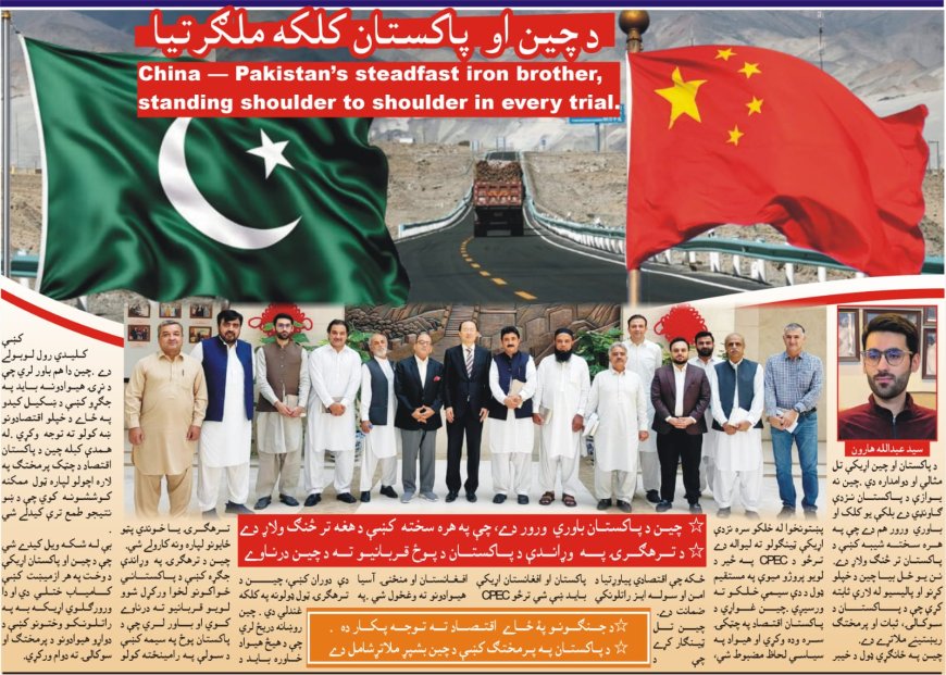 د پاکستان او چين اړيکې تل مثالي او دوامداره دي. چين نه يوازې د پاکستان نزدې ګاونډي دے بلکې يو کلک او باوري ورور هم دے چې په هره سخته شيبه کښې د پاکستان تر څنګ ولاړ دے. نن يو ځل بيا چين د خپلو کړنو او پاليسيو له لارې ثابته کړې چې د پاکستان د سوکالۍ، ثبات او پرمختګ ريښتينے ملاتړے دے.